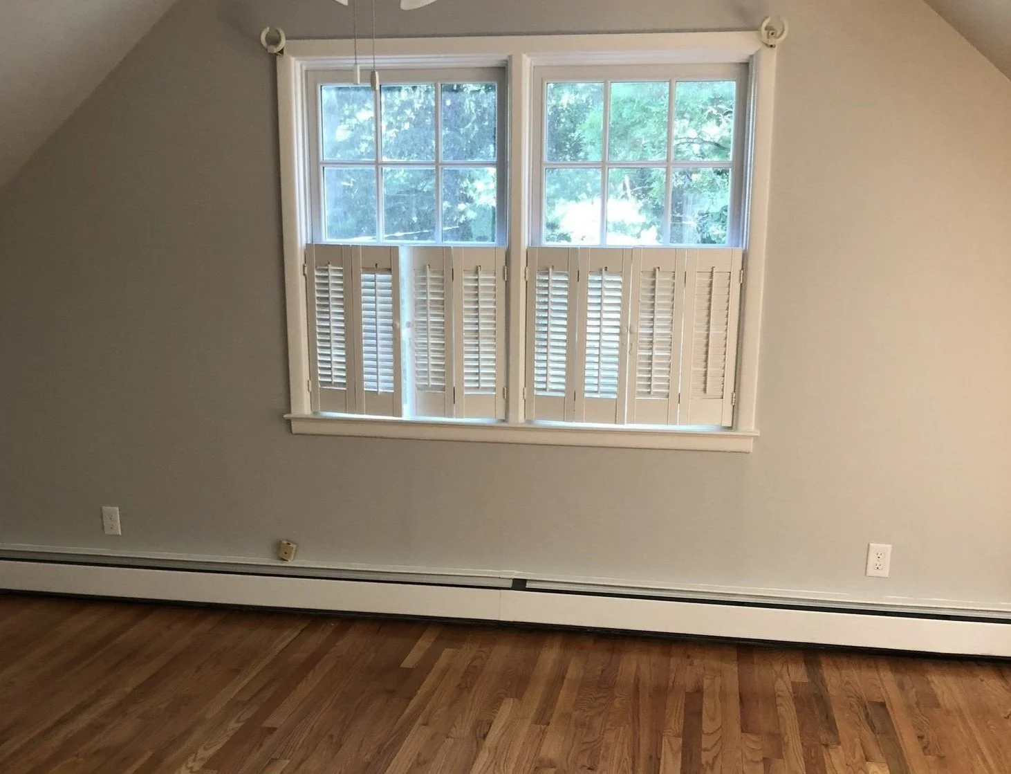 I love a cape cod, but the dormers and roof lines can be a challenge upstairs. I split the windows to allow for a large king bed on the main wall of the bedroom. I added a tongue and groove ceiling detail to create some dimension and covered the walls in a silk mocha colored wallpaper. The alpaca pillows and throw have a terracotta hue. The lamps are plaster, the rattan bench is vintage and covered in a Claremont fabric. The large oak nightstands flank the custom linen bed (that had to be built in the room). The rug is a vintage dhurrie.